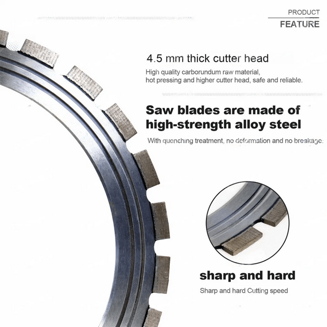 A ring saw machine is a specialized, handheld, or table-top power tool featuring a unique circular, ring-shaped diamond blade that allows for deep cutting—up to 325mm—through reinforced concrete, brick, pipes, and stone. Ideal for precision, dust-free, and narrow-access construction, it is widely used in renovation, demolition, and infrastructure projects for making clean, deep cuts in walls or floors.